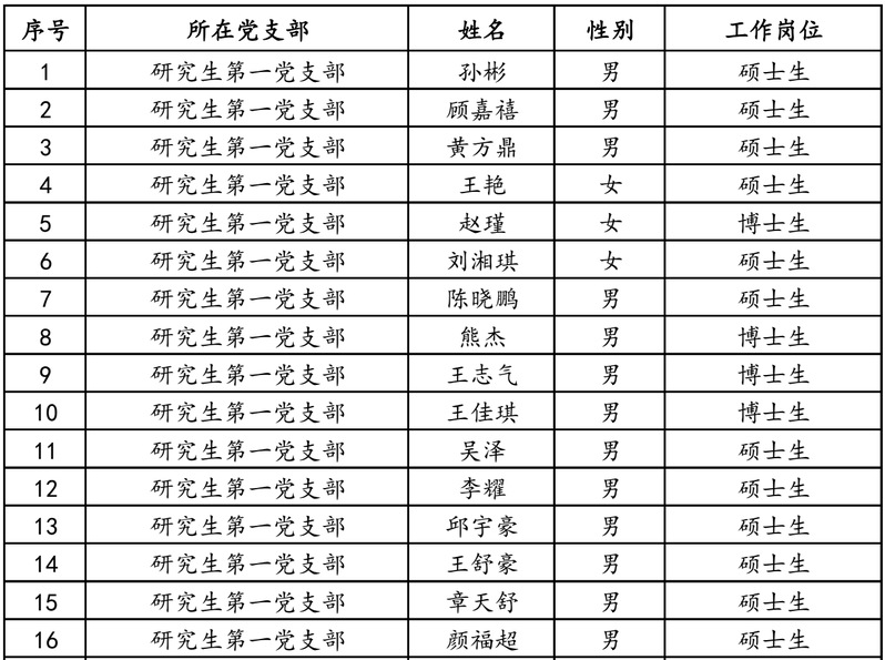附表:2024年度研究生第一党支部优秀党员名单