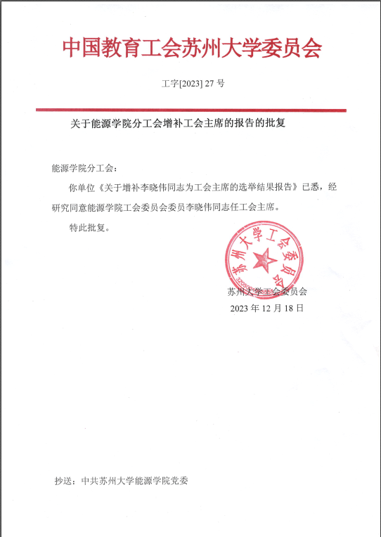 关于国产成人 分工会增补工会主席的报告的批复 苏大能源委〔2025〕1号