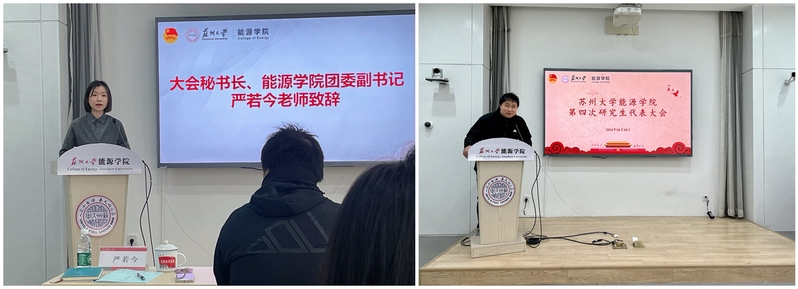 会议伊始,团委副书记严若今老师致辞,她指出,在过去的一年里,第三届研究生会在学院党委和团委的领导下,开展了学术嘉年华、党史樱花节、毕业生晚会、青马公开课、师生趣味运动会等活动,以高度的责任感和使命感,为研究生群体的权益和发展做出了积极的贡献。希望下一届研究生会委员会和研究生会主席团,能倾听更多来自研究生的声音,汇聚更多研究生的智慧,共同推动国产成人 研究生教育的发展。随后,实验室安全员王晓东老师发表讲话,王老师指出,研究生代表大会作为研究生群体自我管理、自我服务、自我教育的重要平台,承载着广大研究生的期待和重托,希望同学们勤于学习、勇于创新,团结协作、共同进步,为学院的发展贡献青春力量。