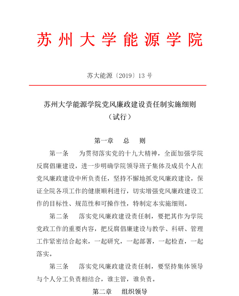国产成人 党风廉政建设责任制实施细则(试行) 苏大能源〔2019〕13号