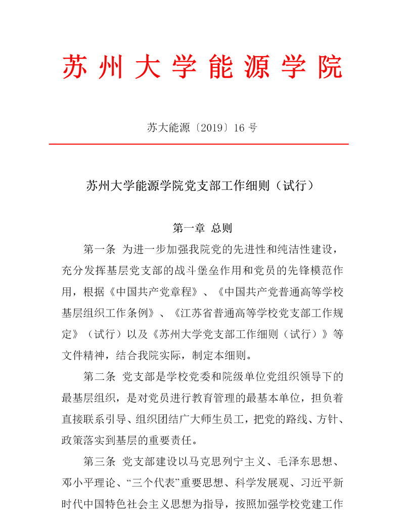国产成人 党支部工作细则(试行) 苏大能源〔2019〕16号