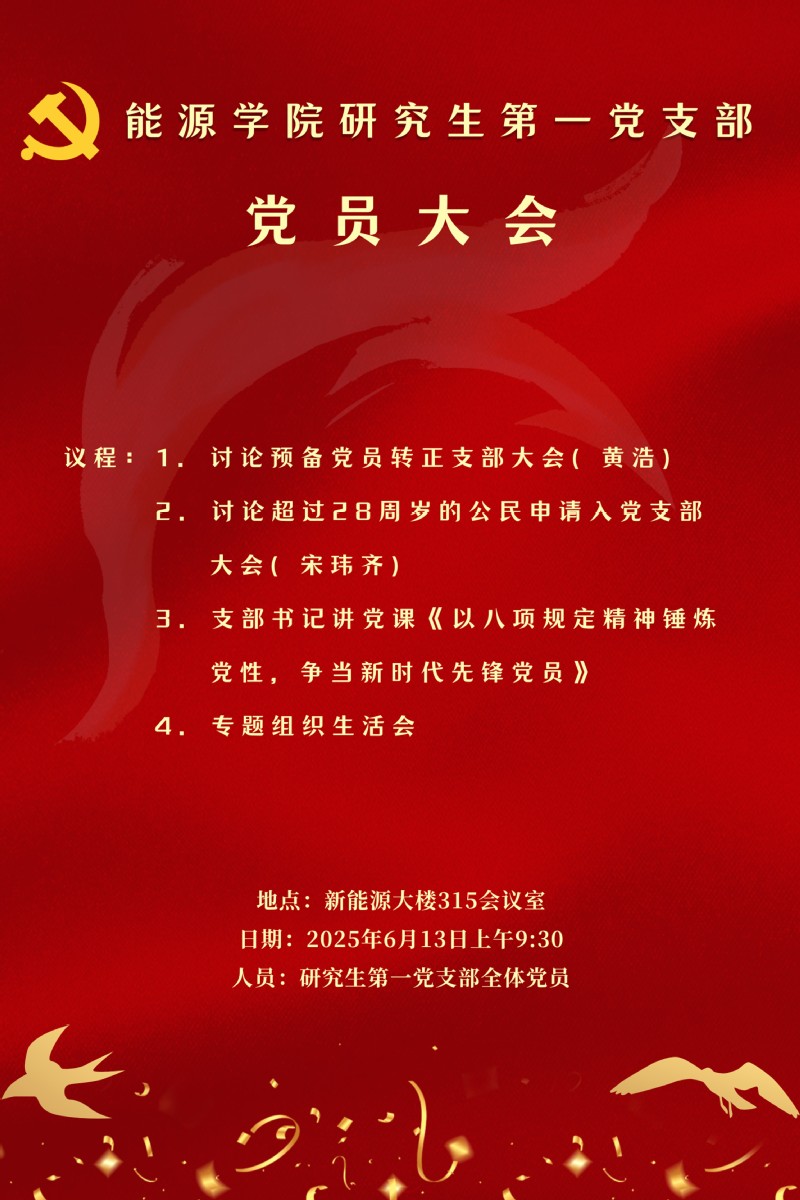 会议预告丨国产成人 研究生第一党支部党员大会