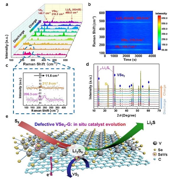 图二:VSe2-VG@CC/S电极的原位Raman和原位XRD表征