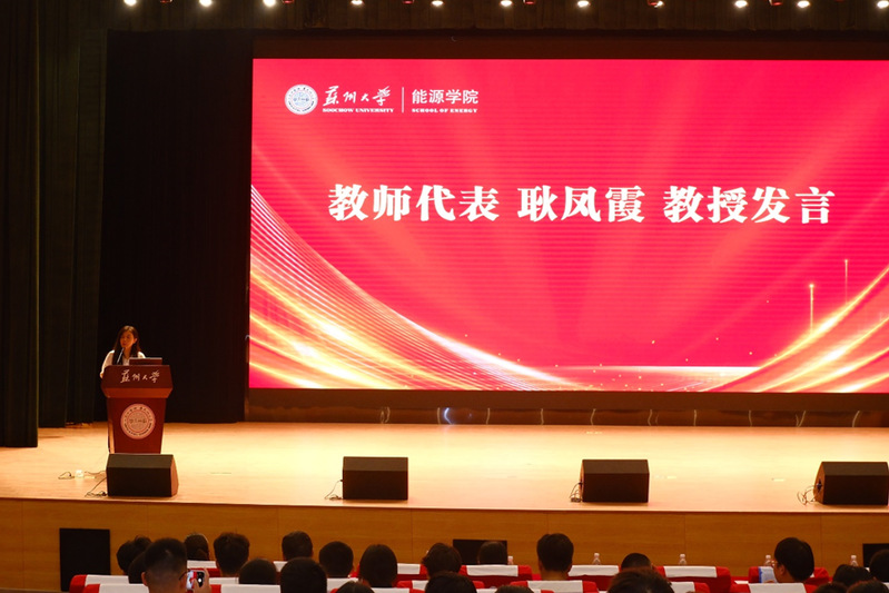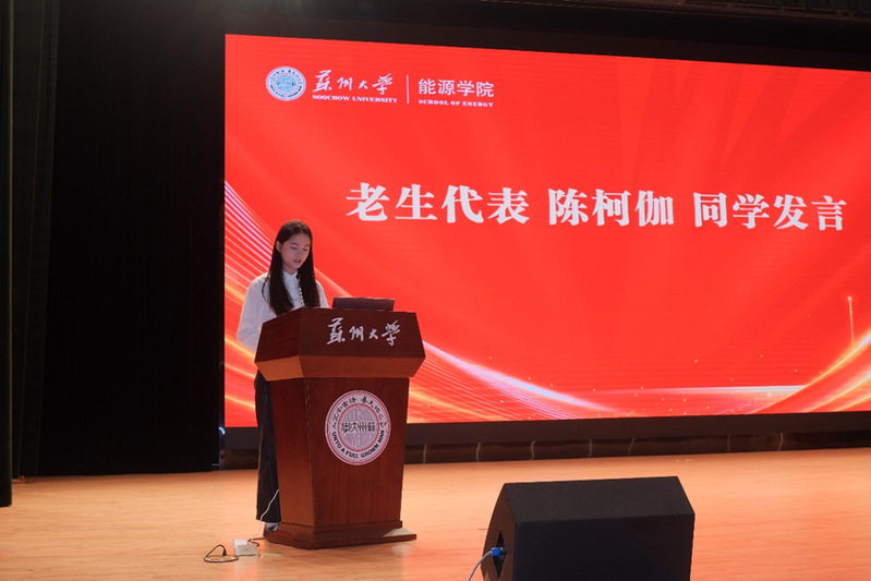 新生代表2024级能源与动力工程的吕思语同学在发言中表达了对未来的期待与信心,激励同学们努力的方向:勤于学习,勇于探索,善于合作,敢于担当。她表示,作为苏大国产成人 的一员,新生们不仅要学习专业知识,更要培养实践和创新能力,为解决全球能源问题贡献力量。