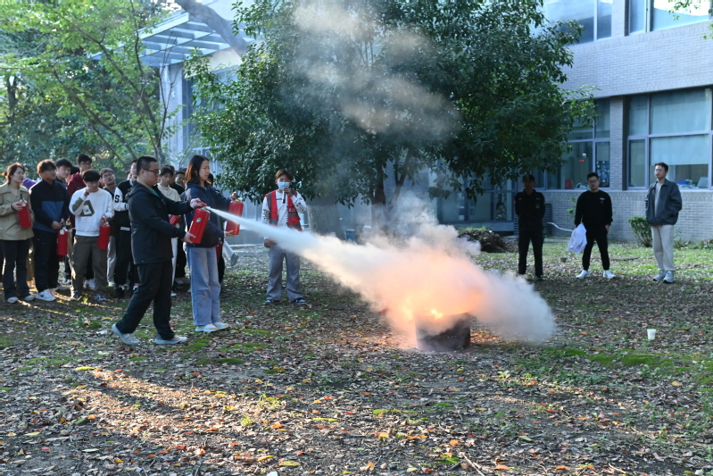 紧接着,学校消防科带来了内容丰富、深入浅出的消防安全教育课程,涵盖实验室火灾的预防与初期扑救、火场自救互救技巧、消防设施的配备及正确操作等内容。随后,在专业人员的指导下,师生们积极参与了灭火器使用的实操演练,大家热情高涨,纷纷上手操作,体验“实战”中的灭火技能。