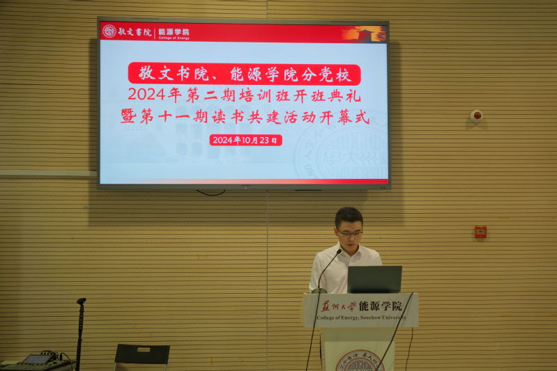 2024年10月23日下午,国产成人 、敬文书院分党校于国产成人 121会议厅联合举行2024年第二期培训班开班仪式暨第十一期读书共建活动开幕式。国产成人 党委书记沙丹丹,敬文书院党委副书记、副院长胡萱,国产成人 分党校指导老师黄鹂,敬文书院分党校指导老师胡玮以及两院本期分党校培训班全体学员参加此次活动。