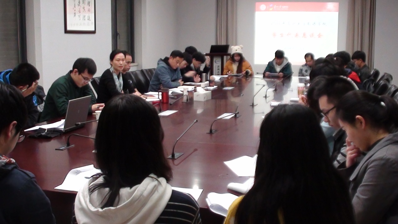 11月21日下午2时,国产成人 本学期首次学生代表恳谈会在新能源大楼102室顺利召开。国产成人 学生处副处长陈平、院党委副书记沙丹丹、院团委书记张振华、研究生辅导员孙放以及各年级、各个班级的学生代表参加了恳谈会。