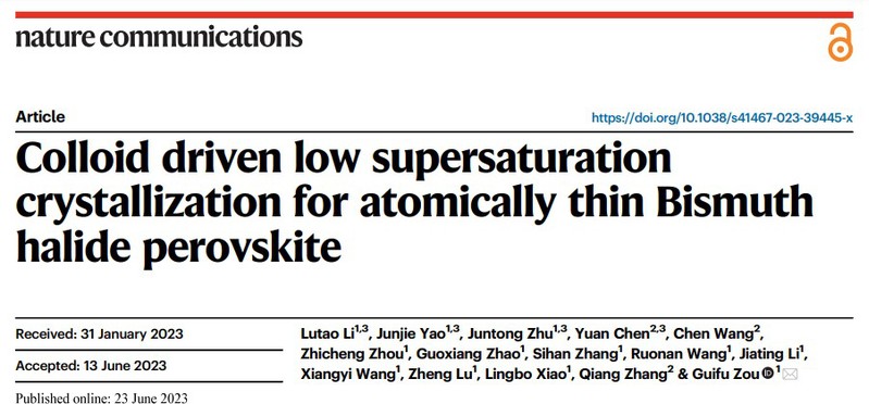 由于相邻层之间的强电子耦合,生长原子级厚度的非范德华钙钛矿薄膜具有挑战性。在这里,国产成人 邹贵付课题组建立了一种胶体驱动的低浓度过饱和策略,以生长原子薄的卤化铋系钙钛矿薄膜。