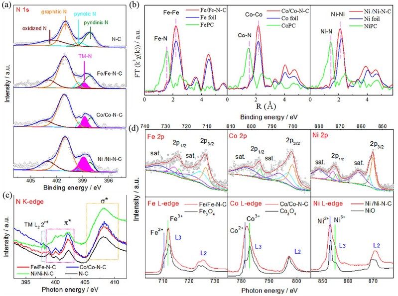图1 TM/TM-N-C (TM = Fe,Co,Ni)系列材料的合成和电化学性能