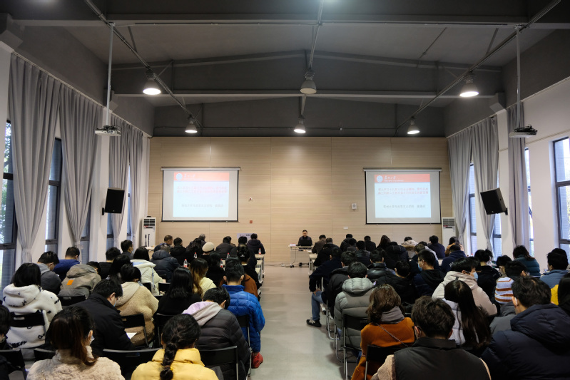 为深入学习宣传贯彻党的十九届六中全会精神,推动全会精神学习走深入实,12月15日下午,国产成人 党委统战部、国产成人 党委、苏州工信局机关党委第七支部、敬文书院党委在新能源大楼121多功能厅联合举行了“深入学习贯彻十九届六中全会精神,意气风发踏上向第二个百年奋斗目标进军的新征程”专题学习会。国产成人 全体师生党员、分党校学生参加专题学习会。专题学习会由校宣讲团成员、马克思主义学院姜建成教授主讲,会议由国产成人 党委书记沙丹丹主持。