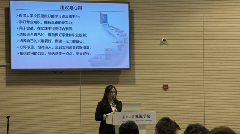 之后,张金灿老师分享了自己攻读博士期间的积累和沉淀,讲述了个人如何了解科研背景、确定科研方向、将成果应用和市场转化的经历,让2024级本科生和研究生对专业的学习和研究有了进一步的认识,也启发新生同学们思考自己未来的职业规划和发展方向。