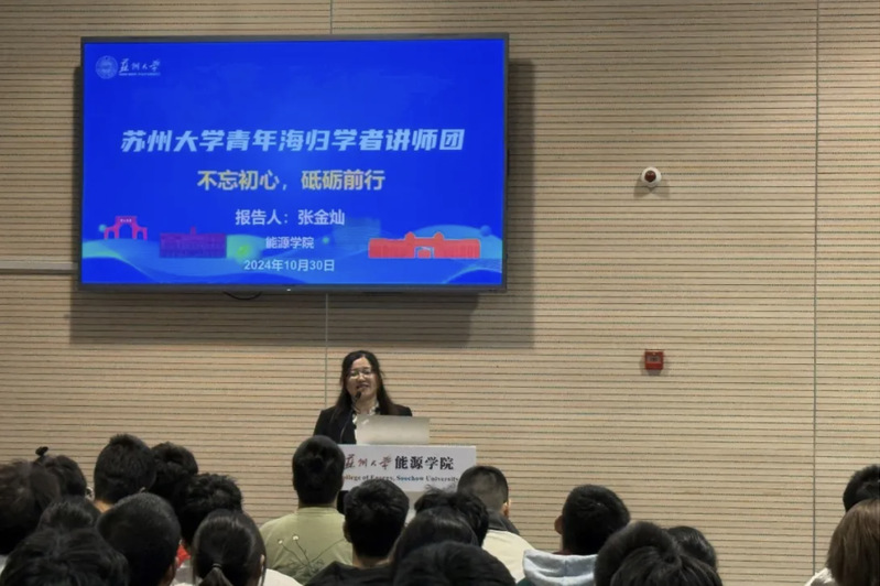 为学习贯彻习近平总书记在全国教育大会上的重要讲话精神,扎实推进落实立德树人的根本任务,培养担当民族复兴大任的时代新人,校党委统战部联合校欧美同学会组建了第六届青年海归学者讲师团,面向2024级新生推出系列讲座。10月28日晚,国产成人 邀请了校第六届青年海归学者讲师团的张金灿特聘教授在多功能厅为2024级全体新生作了一场题为“不忘初心,砥砺前行—我的学业与职业规划” 的主题报告。活动由张振华老师主持。
