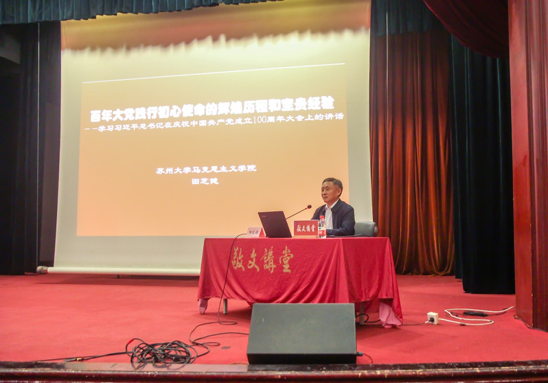 讲座中,田芝健院长立足建党百年新起点,系统阐述了习近平总书记在庆祝中国共产党成立100周年大会上的重要讲话的价值意义。“七一”重要讲话是一部充满着马克思主义真理力量的纲领性文献,有着马克思主义真理的光辉,散发着马克思主义基本原理的芬芳,是中国共产党以史为鉴、开创未来的政治宣言书,是把握历史规律、掌握历史主动、增强历史定力的学史教科书,是党团结带领人民奋斗新时代、奋进新征程的行动指南针。