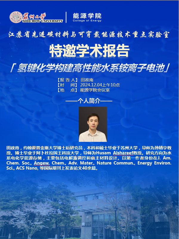 江苏省先进碳材料与可穿戴能源技术重点实验室特邀学术报告