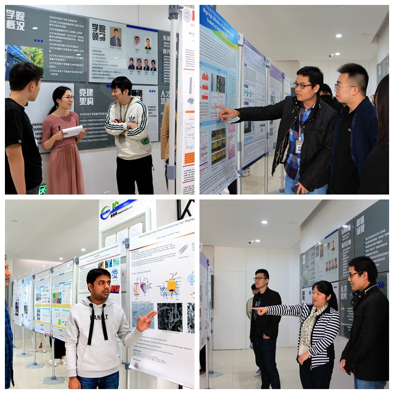 学术海报评审于活动当日上午在新能源大楼大厅举行,参评同学通过精彩的海报展示各自科研成果,评委老师根据海报内容及学生讲解提出专业性问题,交流研究内容和方法,在公正评审的同时也给予了指导性的建议。
