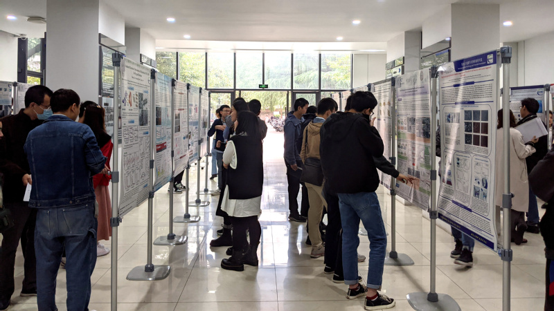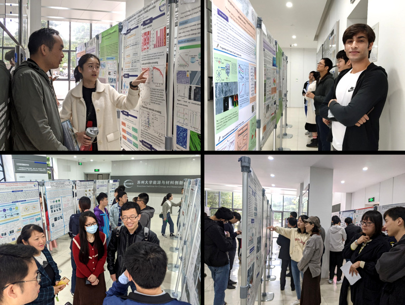 学术海报评审于活动当日上午在新能源大楼大厅举行,参评同学通过海报展示各自科研成果,评委老师根据海报内容及学生讲解提出专业性问题,在公正评审的同时也给予了指导性的建议。恰逢北京石墨烯研究院的科研人员来校参观交流,他们对同学的科研成果给予了高度肯定。
