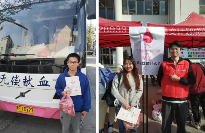 献完血,同学们便可收到来医院所颁发的无偿献血证和感谢状,医院和青年志愿者也为他们准备了纪念品和补给包。