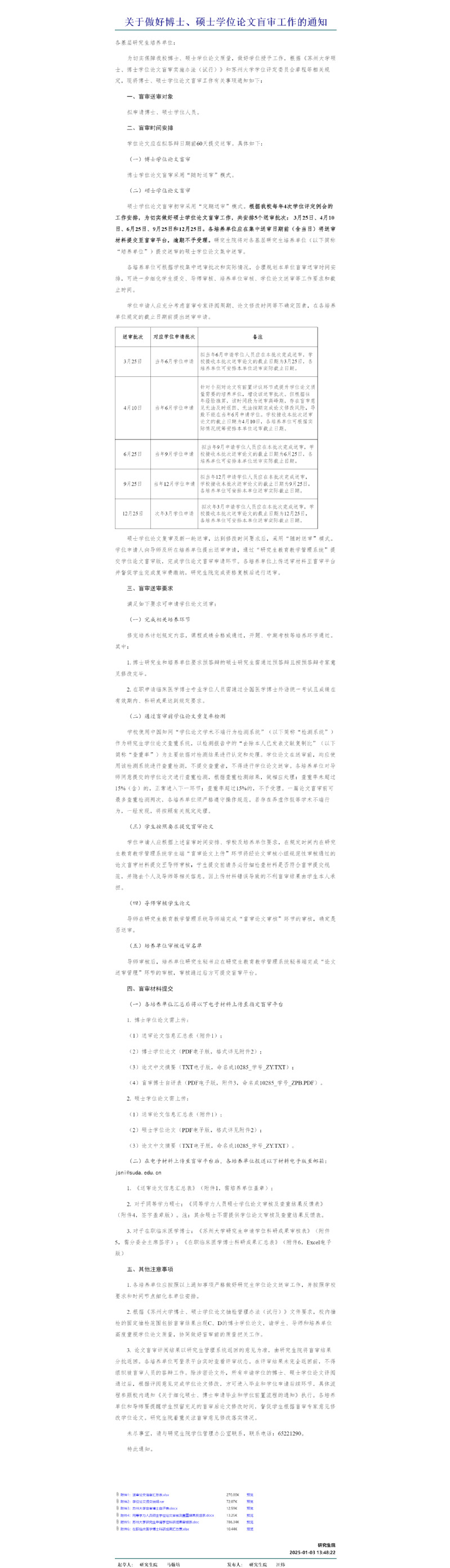 根据《国产成人 硕士、博士学位论文盲审实施办法》(苏大研〔2024〕4号)等文件精神,2025年学位论文盲审工作即将开始,请2025年答辩的研究生做好相关工作。