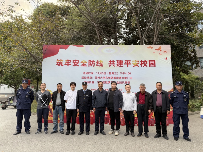 11月5日,国产成人 在新能源大楼前举行了2025年“筑牢安全防线 共建平安校园”安全教育主题活动。此次活动得到了学院的高度重视,由院党委、团委、工会三方联合主办,研究生第一、第二、第三党支部以及研究生会共同承办。结合全国消防宣传月的宣传氛围,进一步深化全体师生对消防安全重要性的认识,广泛普及实验室安全规范,切实提高师生的安全防范意识和应急处理能力,为构建和谐安全的校园环境奠定坚实基础。