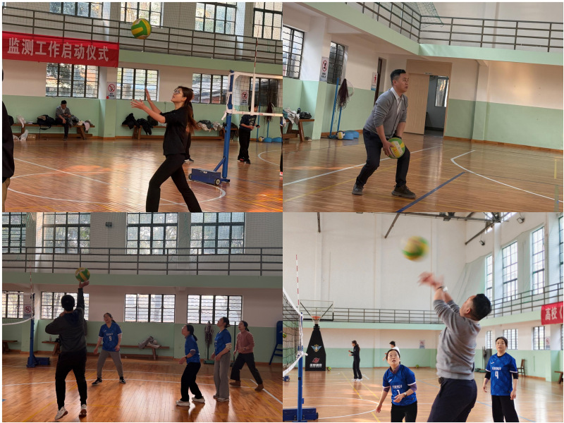 比赛过程中,场面紧张激烈、亮点频现。教师一队沉着稳健,传球精准、防守严密;教师二队技术扎实、发挥稳定;学生一队反应迅速、配合流畅,多次打出漂亮反击;学生二队敢拼敢闯,每一次跃起扣杀与奋力扑救都迸发着青春的朝气。赛场内外,既有比分紧咬时的冷静应对,也有落后时的相互鼓励。