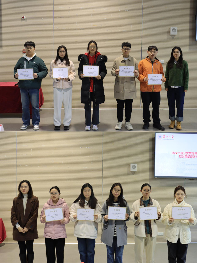 为表彰在读书共建活动中表现突出的学员,激发全体学员的学习主动性与阅读热情,国产成人 分党校指导老师胡碧洋首先为本期国产成人 优秀朗读者颁发证书;随后,敬文书院分党校指导老师胡玮为敬文书院优秀朗读者授予荣誉证书。证书不仅是对学员过往学习成果的肯定,更体现了分党校对学员未来深化理论学习、践行党员初心的期许,获奖学员表示将以荣誉为激励,在后续学习生活中持续提升自我。