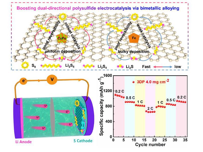 锂硫电池由于诸多优点已经获得了诸多科研工作者的关注,目前限制其大规模应用的瓶颈主要在于多硫化锂的穿梭效应和氧化还原动力学缓慢等。基于以上现状,国产成人 的孙靖宇教授团队在Advanced Functional Materials上发表题为“Boosting Dual-Directional Polysulfide Electrocatalysis via Bimetallic Alloying for Printable Li–S Batteries”的研究论文。国产成人 硕士研究生史子雄为第一作者;孙靖宇教授为通讯作者。