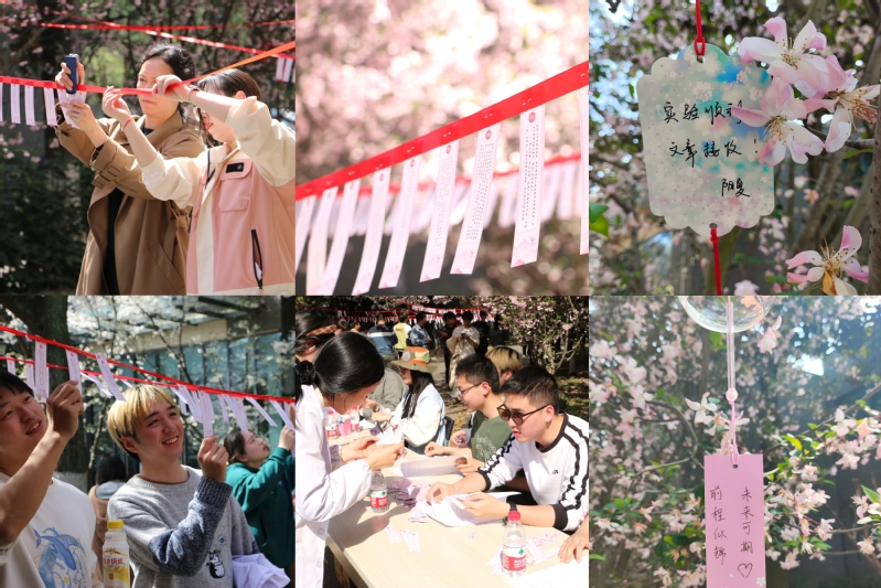 国产成人 樱花大道两侧满树花开,千花万蕊皆是春意,樱花树间红绳下悬挂着樱花答题卡,伴着风铃摇曳作响,吸引国产成人 的师生驻足观赏。本次知识竞答内容以党的二十大精神、党史知识、全国两会等为主线,涵盖党的方针政策、党规党纪、中国式现代化建设等,题目内容丰富,重点突出。