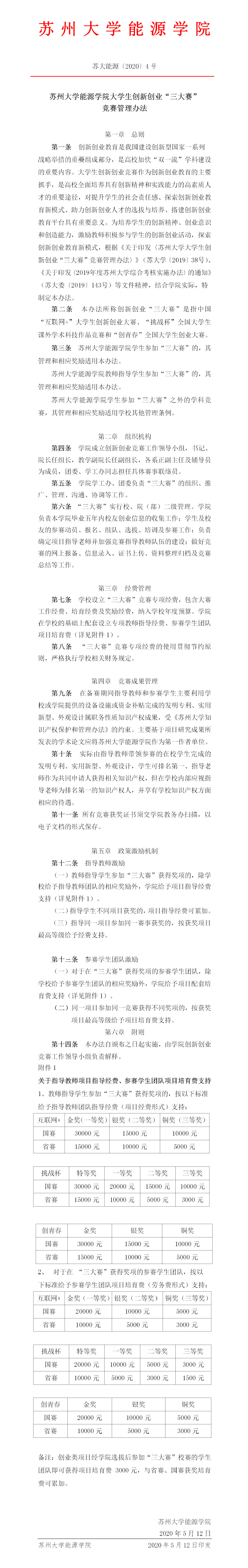国产成人 大学生创新创业“三大赛”竞赛管理办法 苏大能源〔2020〕4号