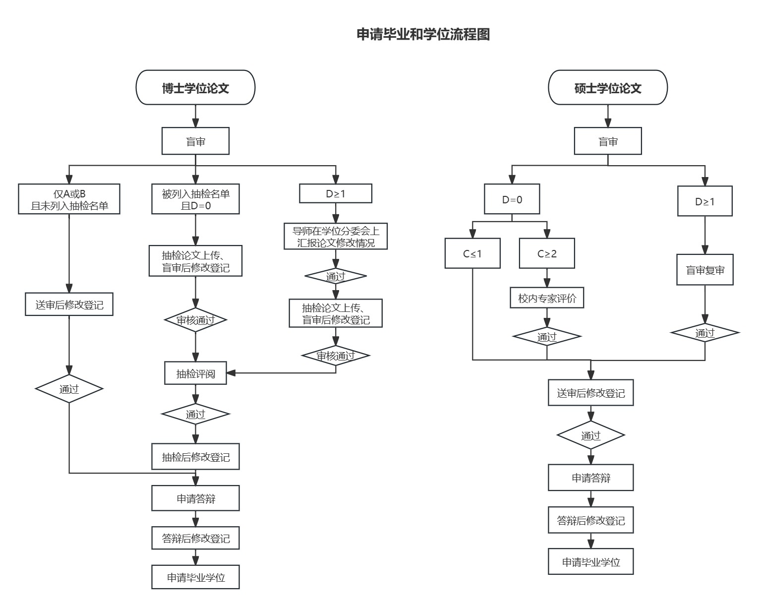 (二)上述之外的人群根据盲审实施办法完成不少于规定天数的修改后,还须根据盲审实施办法、抽检管理办法的要求,额外完成下列各项环节后方可申请学位:
