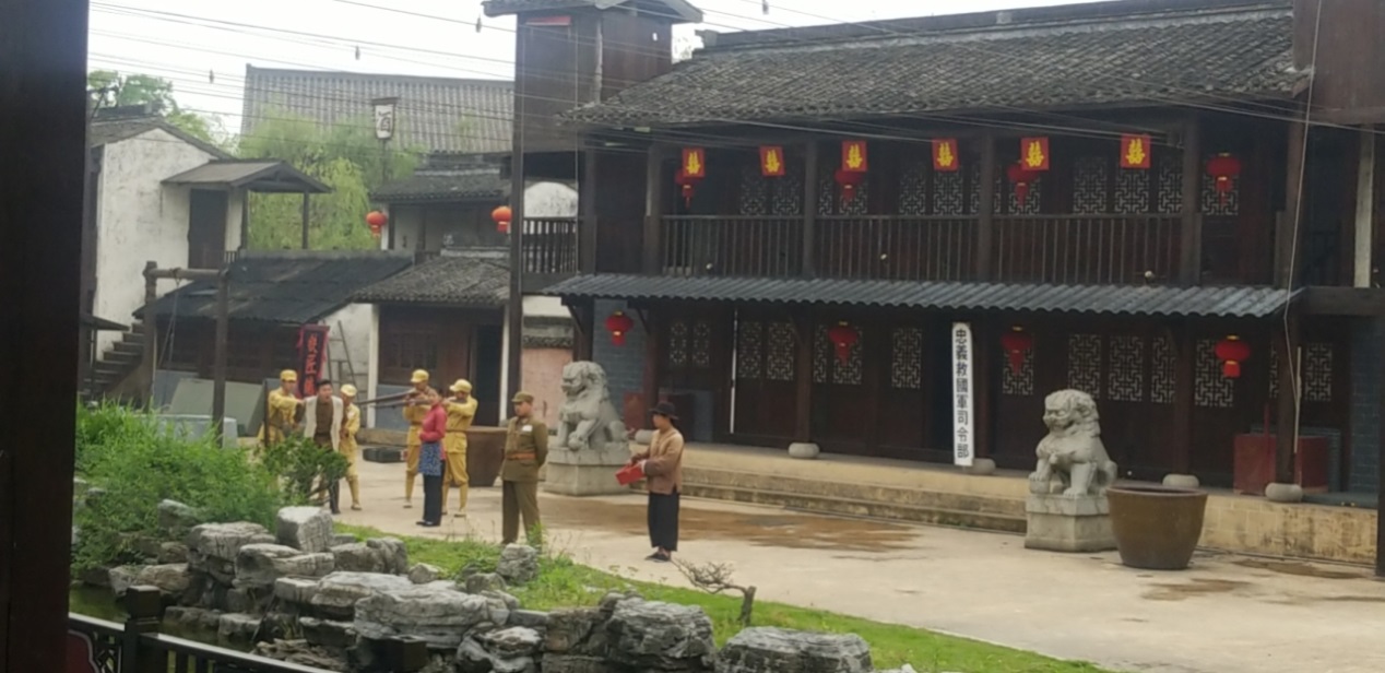 随后,大家步行来到横泾剧场观看大型实景剧《智斗胡司令》。该剧运用了高科技特效手段,重现了阿庆嫂拥军抗敌的先进事迹。剧中人物台词诙谐生动、剧情发展扣人心弦,同时逼真的爆炸、枪战等激烈场面,给人以强烈的感官震撼,在场的观众纷纷拍手叫好。