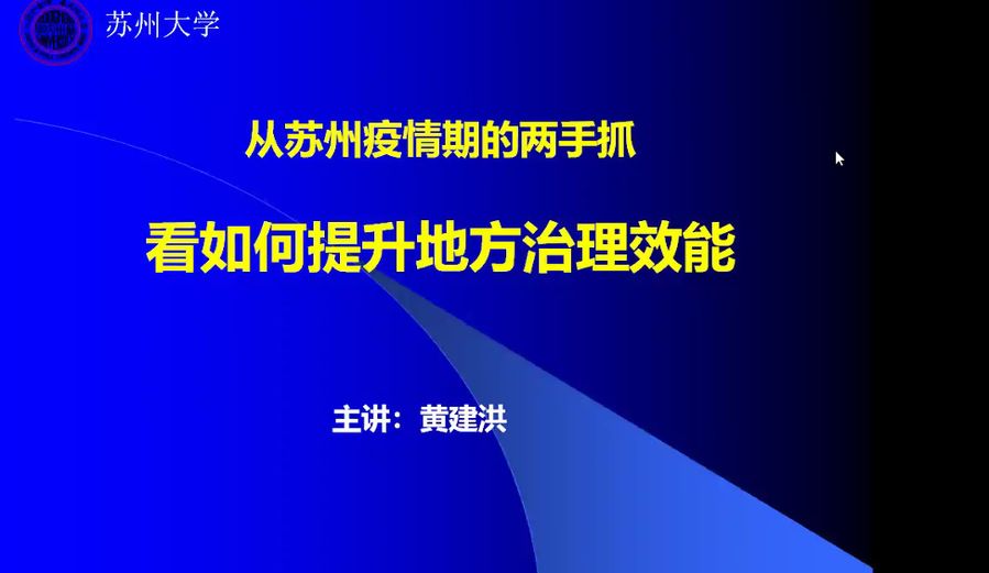 黄建洪教授以为疫情期间苏州“两手抓”为核心,首先向大家简要介绍了苏州市近些年来在经济发展领域所取得的巨大成就以及当前苏州市内部疫情管控所面临的客观压力,并指出在新冠疫情整体向好、节后复工复产如火如荼展开的同时,苏州市的分级分类管控疫情与复工复产“两手抓”的地方治理能力也在逐步提升。黄教授通过苏州如何一手抓疫情管控一手抓复工复产,处理好生产与生活、秩序与发展的辩证关系中展开了一下三个方面陈述: