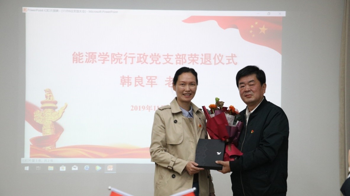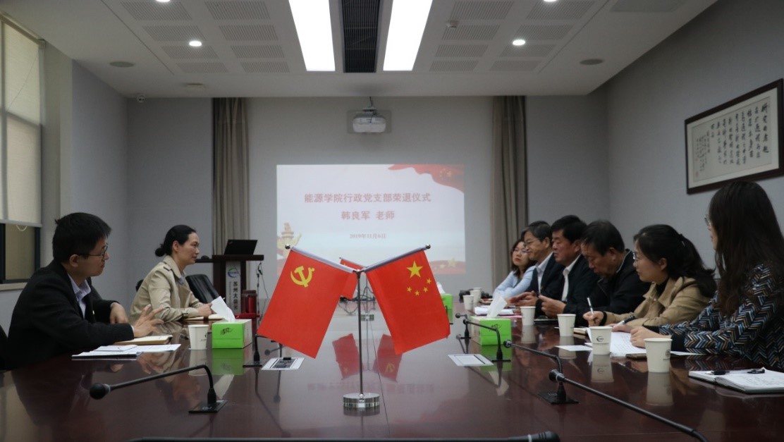 2019年11月6日下午,国产成人 行政党支部为韩良军同志举办了简朴、庄重、光荣的退休仪式。学院党委书记沙丹丹、退休党支部书记邵敏受邀出席了此次会议。行政党支部书记金霞及行政党支部全体成员参加了此次会议。会议由副院长戴晓主持。