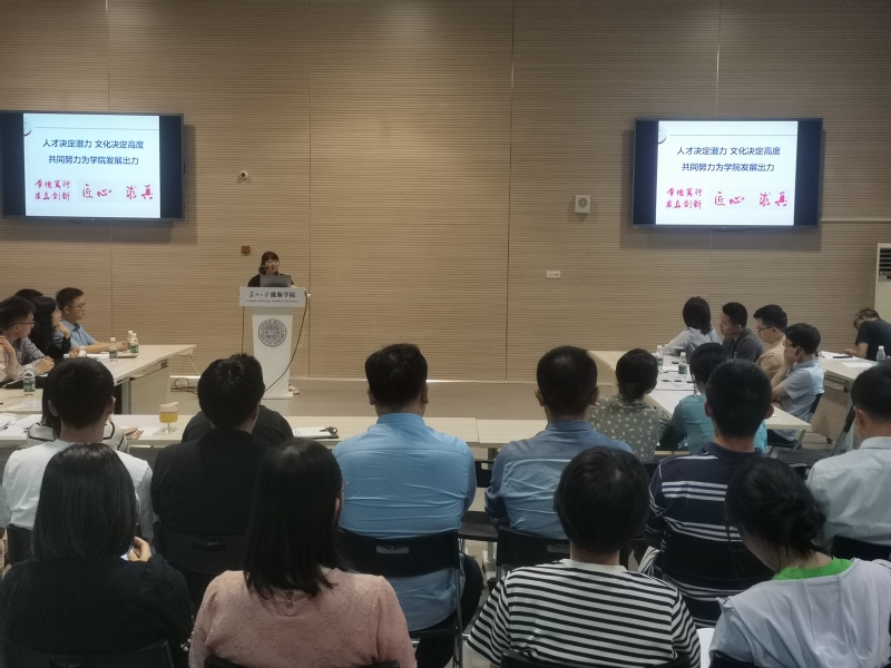 首先,沙丹丹代表学院欢迎刘江、邹培超、张金灿、叶雅奇、吴佳卿5名教职工加盟国产成人 ,希望五位老师勇担育人使命,以积极进取的心态和饱满的工作热情积极投身学院建设发展大局。