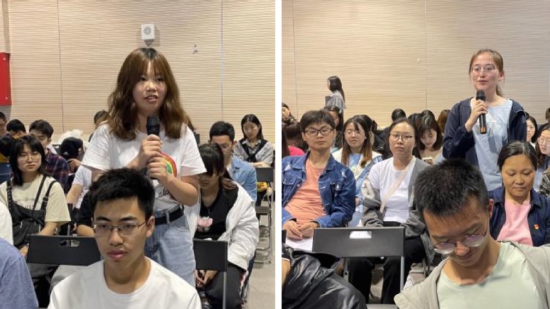 宣讲结束后,现场学生党员就“大学生学习党史的意义”“大学生如何学好党史这门‘必修课’”等向张才君教授提问,张才君教授从学习中国共产党的精神内核出发,启发大家坚定理想信念,锻造过硬本领,矢志奋斗。