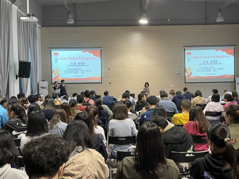 党的历史是最生动、最有说服力的教科书。为贯彻落实国产成人 党委《关于国产成人 党史学习教育专题宣讲工作的通知》,引导学院师生学史明理、学史增信、学史崇德、学史力行,5月26日下午,苏州市工信局机关党委,国产成人 党委、分党校,敬文书院党委、分党校联合举办党史学习教育专题宣讲,特邀校宣讲团专家、马克思主义学院教授张才君主讲题为《从党的百年历史中汲取奋进伟力》的专题报告。国产成人 党委理论学习中心组及基层党支部全体党员、分党校全体学员参加宣讲会,会议由学院党委书记沙丹丹主持。