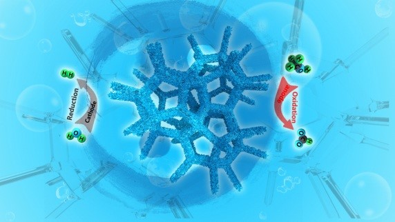 将一定摩尔比的金属盐前驱体溶解于乙醇溶液中,与清洗过的泡沫镍一同水热反应得到负载于泡沫镍上的电催化剂。通过钌与铁的掺杂,得到了具有多级结构的Ru&Fe-WOx电催化剂。
