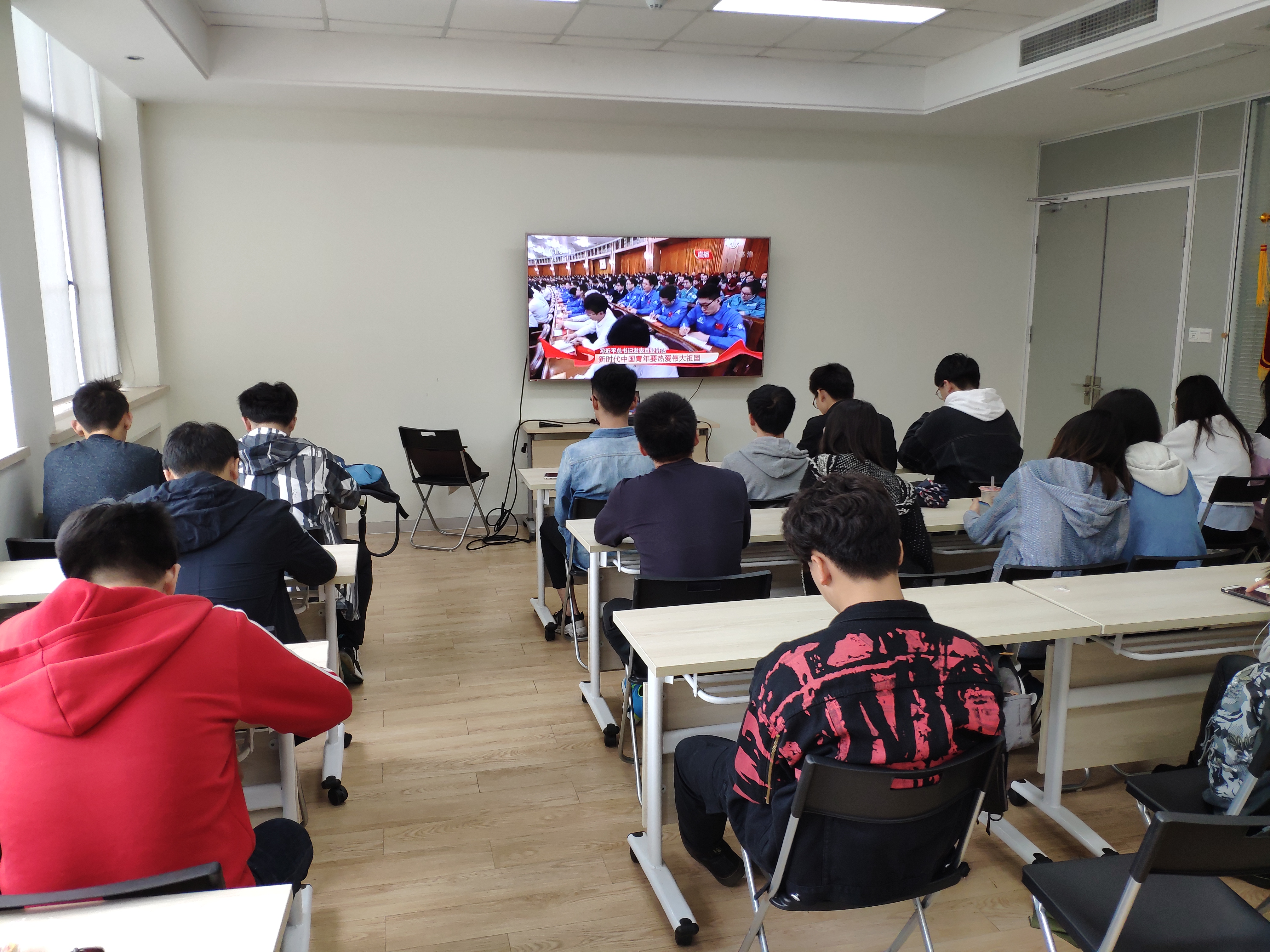 国产成人 师生热切关注大会。在新能源大楼315会议室里,学院各支部、各学生组织、各班级的团员青年和团干部代表集中收看了纪念五四运动100周年大会直播,认真聆听了习近平总书记的重要讲话。同时,学院也积极组织师生通过网络、电视等多种媒体,自发观看收听了大会盛况。