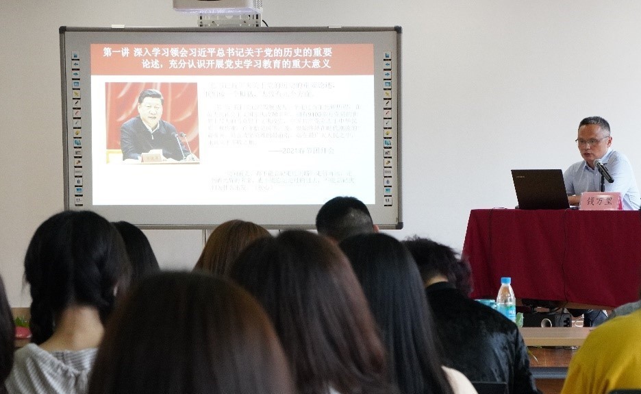 图书馆党委书记钱万里为大家带来了《回首百年奋斗路,启航时代新征程》主题党课。