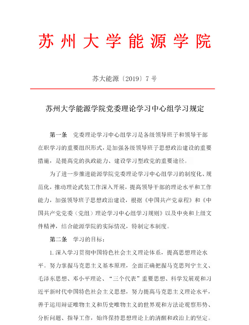 国产成人 党委理论学习中心组学习规定 苏大能源〔2019〕7号