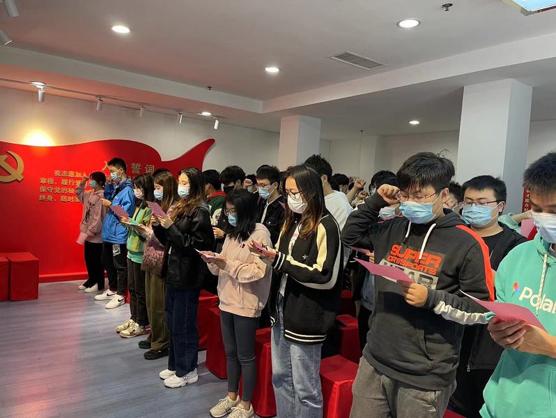 首先,学员们集体观看了丁香烈士的生平事迹,当讲述到丁香烈士和革命伴侣乐于泓的爱情故事,并且丁香烈士牺牲时年仅22岁且怀有三个月的身孕时,在场所有的能源人无不都为之动容。我们从丁香烈士身上感受到的不仅是她与乐于泓同志的革命爱情,更是勇于奉献和不畏牺牲的革命精神。这份对信仰的坚守与爱情的的忠贞始终激励着新时代的我们努力学习,奋勇前进。观影结束后,全体学员举起右拳面对党旗庄严宣誓,发出铮铮誓言。