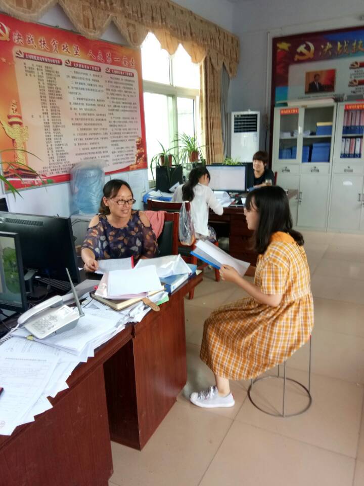 与此同时,在许昌县张潘镇焦庄村大队扶贫办公室,扶贫办工作人员同样热情地接待了我们另一位调研成员。调研成员了解到,为了解决对农民的宣传问题,扶贫人员要一家一家地宣传落实,越是贫困,就越要重点地介绍,不光要帮助了解扶贫政策,还要亲自帮他们申请,走程序。村里醒目位置都刷有宣传海报,每个村民都可以看到。