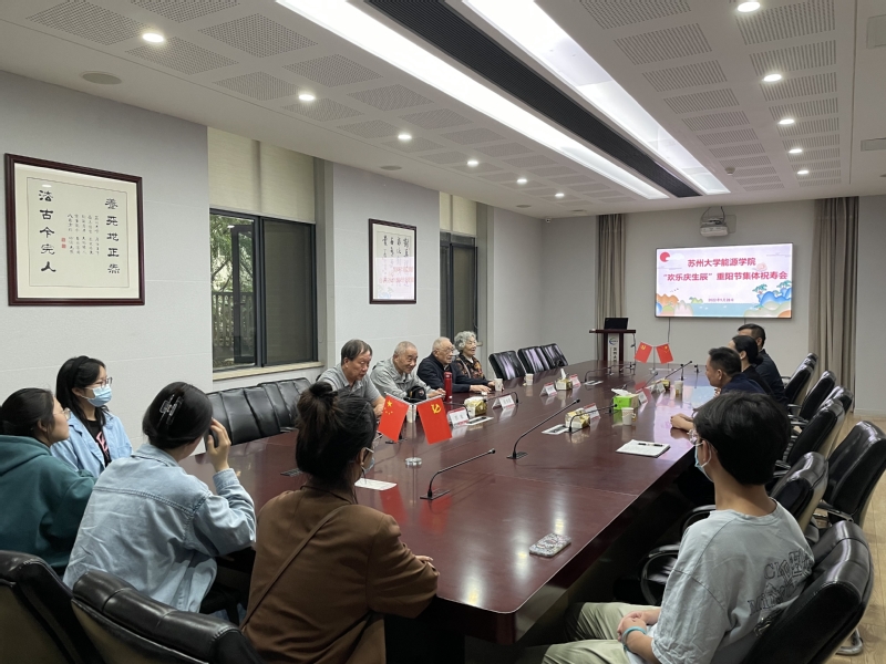 9月28日上午,国产成人 举行“欢乐庆生辰”离退休老同志重阳节集体祝寿会及“余晖映朝霞 喜迎二十大”关工委座谈会。学院化学电源研究所(简称“化电所”)马菱红、程荣强、沈湛民3位年满70、80、90周岁的老寿星和离退休教职工代表邵敏老师共度重阳佳节。学院党委书记沙丹丹,副院长、化电所所长王海波,副院长包军,本科生代表出席了本次活动。会议由包军主持。